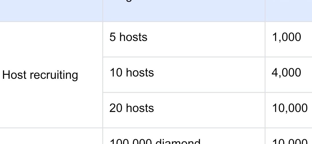 Hosts can get 7,000 diamonds from 10,000 coin gifts