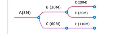 Agent A Commission rate=20% (because A 3 M + B 30 M + C 60 M + D 20 M + E 20 M + F 110 M = 243M)