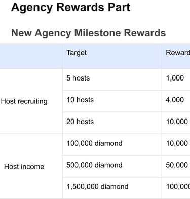 Note:agency income including all hosts income from calls, gifts, game share, all the task reward from platform is not include