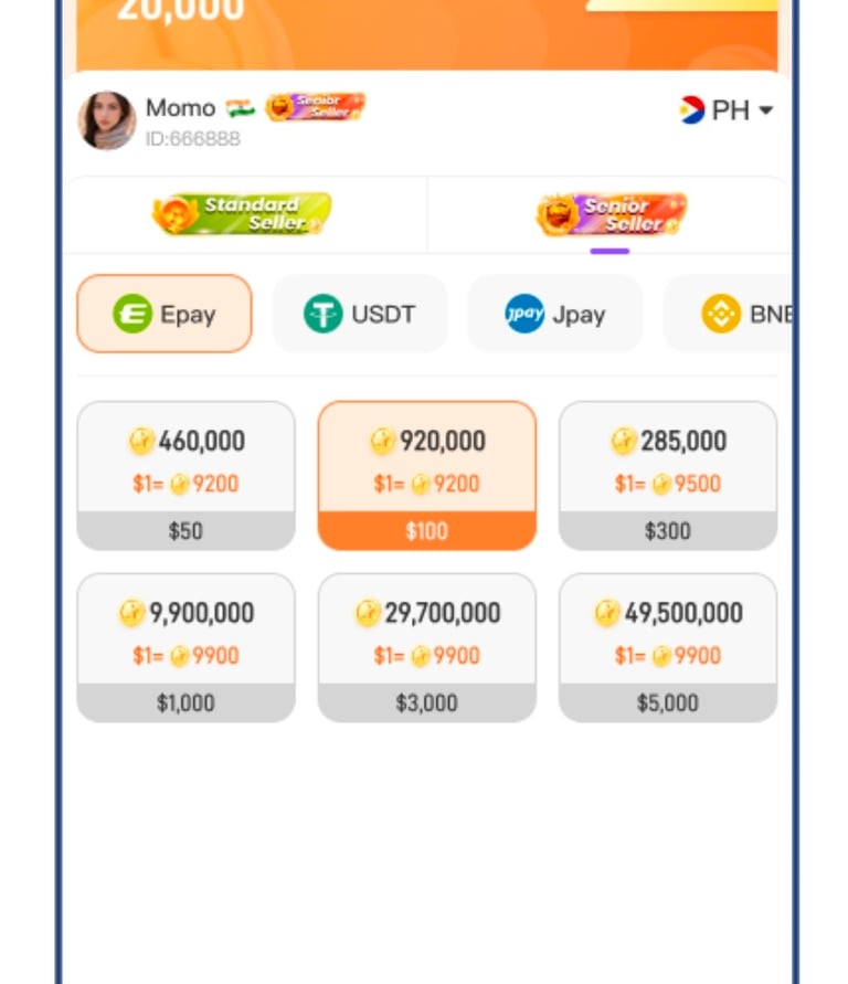 Coin seller recharging page:
