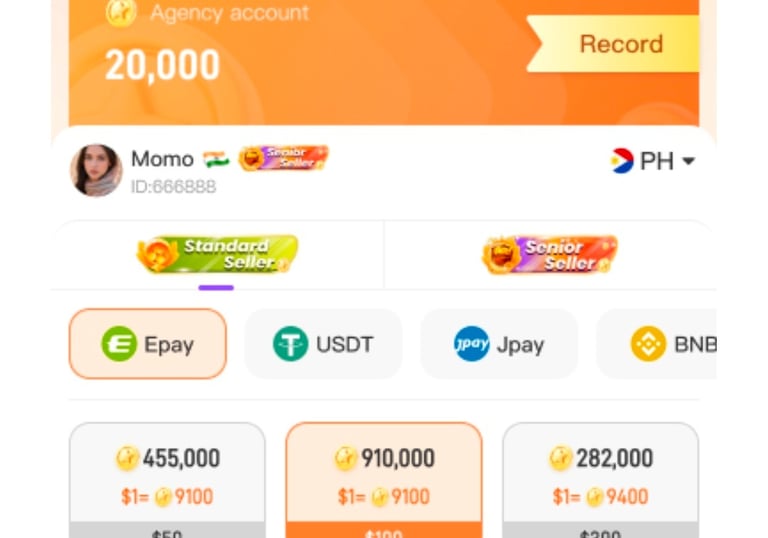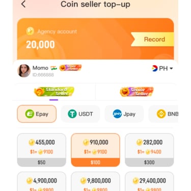 Note: if a standard coin seller wants to level up to be a senior coin seller, his/her monthly sales must be over $5,000, and the first top-up for upgrading must be over $2,000